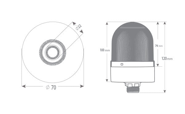 Utripanje ø70 NUT.CONN.SIGNAL BEACON WITH BUZZ., 40-250V AC/DC., BLUE WITH 10CM EXT.TUBE